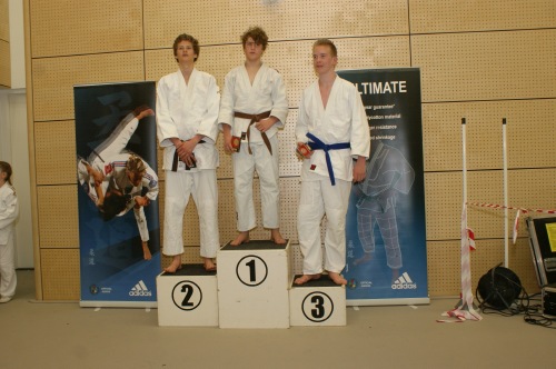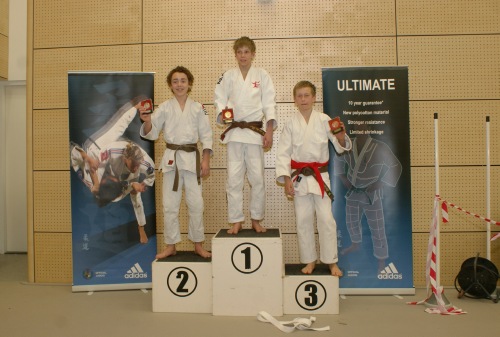 De middag werd afgesloten door de judoka’s tot 17 jaar. Ondanks dat Chantal (JcL) moest aantreden tegen een aantal meisjes die zich ook geplaatst hadden voor de NK deed ze erg haar best, helaas betekent dit echter niet altijd dat je wint. Toch was coach Pieter erg tevreden over haar inzet! De beste prestatie van de dag werd echter geleverd door Daan Streefkerk (JcL), (die onderhand wel een nieuwe prijzenkast mag gaan bouwen) en Tobias Defesche (van Heest) die beiden beslag wisten te leggen op het goud. Voor Tobias was dit extra knap omdat hij met z’n 67 kilo uitkwam in de klasse tot 81 kg.