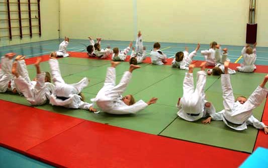 De kinderen moeten laten zien dat ze goed kunnen vallen