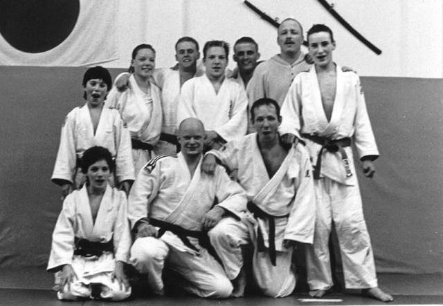 In het najaar van 1998 moesten we onze oude sportschool aan de Palmgracht verlaten. Dit tot groot verdriet van alle gebruikers. Naast de vast judo dojo hadden we beschikking over meerdere fitnesszalen en een eigen sauna, mede hierdoor waren onze judoka’s toen altijd op gewicht. We moesten toen zoeken naar een nieuwe locatie in de buurt. Deze werd gevonden bij kindervereniging de Palm aan de Palmstraat. De eerste jaren gaf Willem van Heest les op de dinsdag en Johan van Heest gaf les op de vrijdagavonden. Hieronder staat een groepsfoto van de dinsdaggroep.
