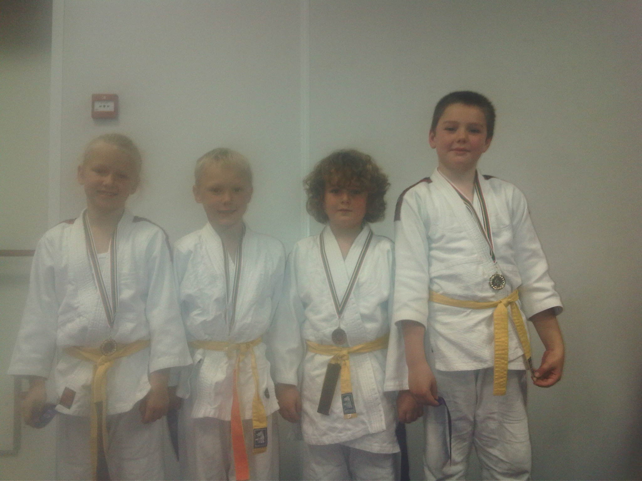 Net onder de douche vandaan: Danique, Finn, Sam, Sam op het Ontwiktoernooi