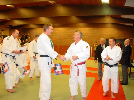 Hendrik werd gefeliciteerd door Joop Pauel (6e dan)