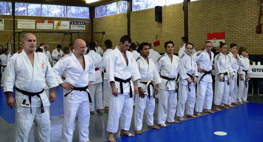 Afgelopen weekend was de thuisronde voor het combinatie team Judoschool van Heest / JC Landsmeer. Deze werd gehouden aan de Sportlaan in Landsmeer. Het team had zin in een flinke pot judo en dat gebeurde ook. Echter in de eerste partij die ons zwaargewicht Cees “de Rots” moest judoën werd hij onwel. De medische wereld is er op de dag van vandaag er nog steeds niet over uit of dit kwam doordat zijn echtgenote Monique “de Lieverd” kwam kijken of dat Cees een koudje had opgelopen of misschien wel de benauwdheid van de dojo of was het toch hart klachten. Wat wel duidelijk werd is dat Cees zijn 2e partij niet kon judoën. Gelukkig dat we nog een zwaargewicht bezitten en dus trok Johan het judo pak van Cees aan en vocht voor het winnende punt in de tweede partij. Zo werd de avond toch nog een succes voor de thuisploeg. Cees “de Rots” wensen we veel beterschap en de medische wereld? “ach laat ze maar lullen” dat zeggen wel meer Diemenaren.
